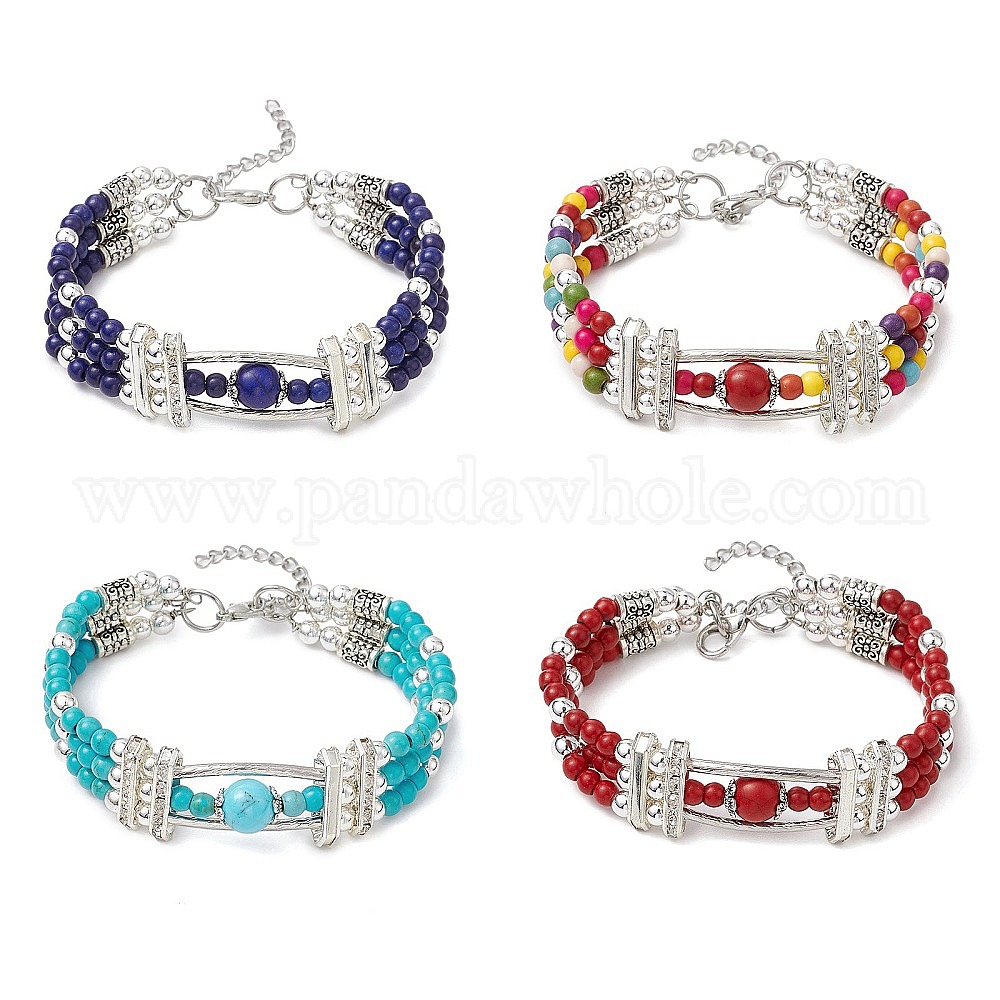 Круглые браслеты из синтетической бирюзы и немагнитного синтетического гематита для женщин и мужчин, со стразами