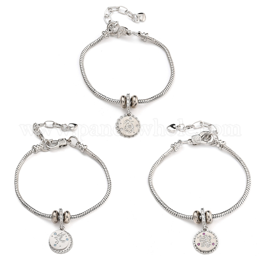 Латунные микропаве кубические цирконии европейские браслеты, со стеклом, круглые