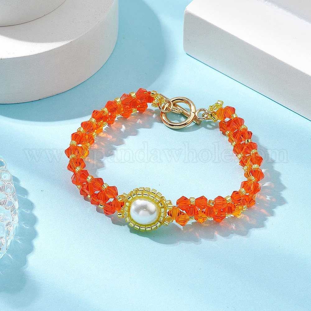 • Темно-Оранжевый Стеклянный бисер стрейч браслеты, с 304 застежками-тогглами из нержавеющей стали для женщин, темно-оранжевый, 6-7/8 дюйм (17.5 см)