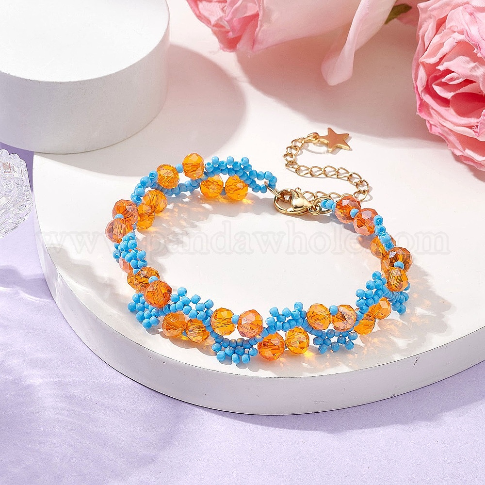 Стеклянные бусины эластичные браслеты для женщин, с 304 из нержавеющей стали Lobster Claw застежками