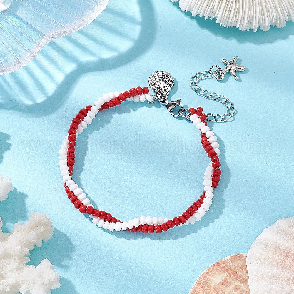 Браслеты из стеклянного бисера ручной работы для женщин, с подвеской в форме ракушки из сплава