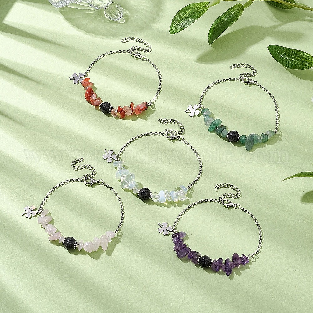 Браслеты из натуральных смешанных бусин из драгоценных камней для женщин, с бусиной из лавового камня и 304 фурнитурой из нержавеющей стали
