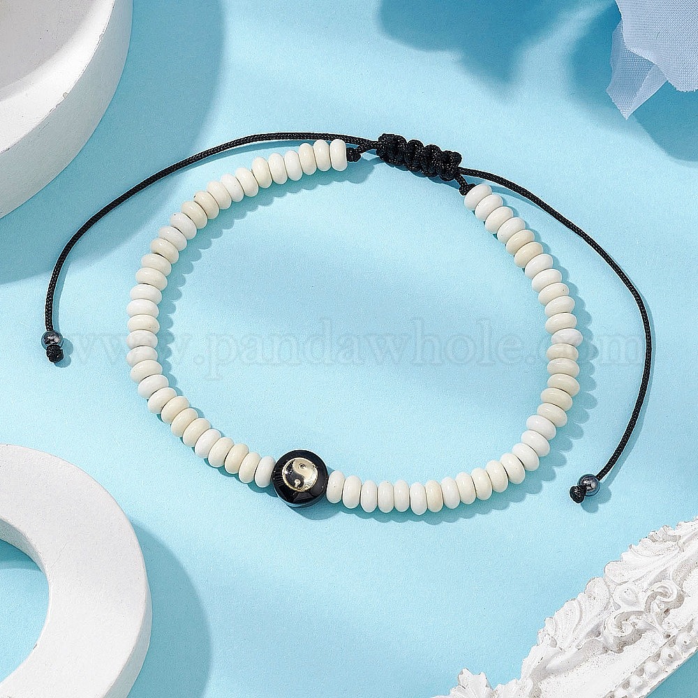 Регулируемые браслеты из нейлонового шнура с плетеными бусинами для мужчин, с синтетическими бирюзовый