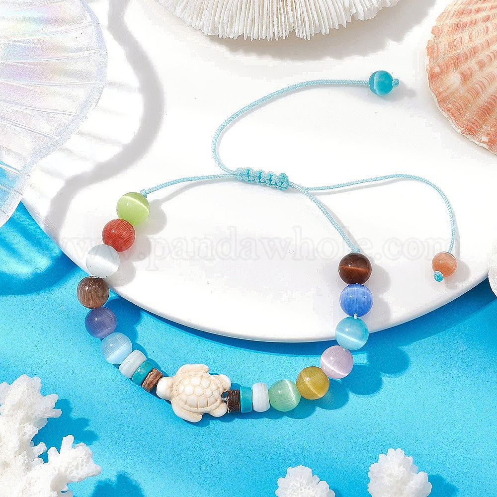 Бусины кошачьего глаза, синтетическая бирюза, кокосовые бусины, натуральные пресноводные бусины, плетеные браслеты из бусин
