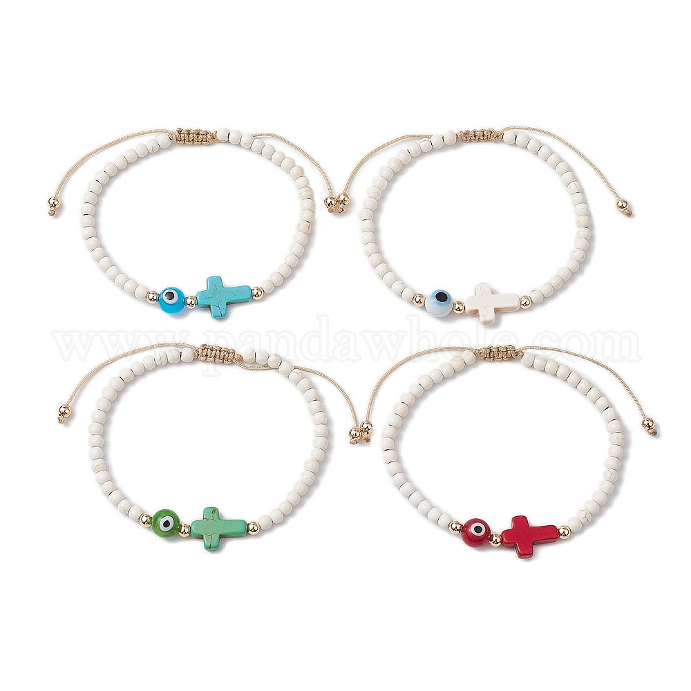 4шт. плетеные браслеты из синтетических бусин бирюзового цвета для женщин, воском шнура, крест и глаз