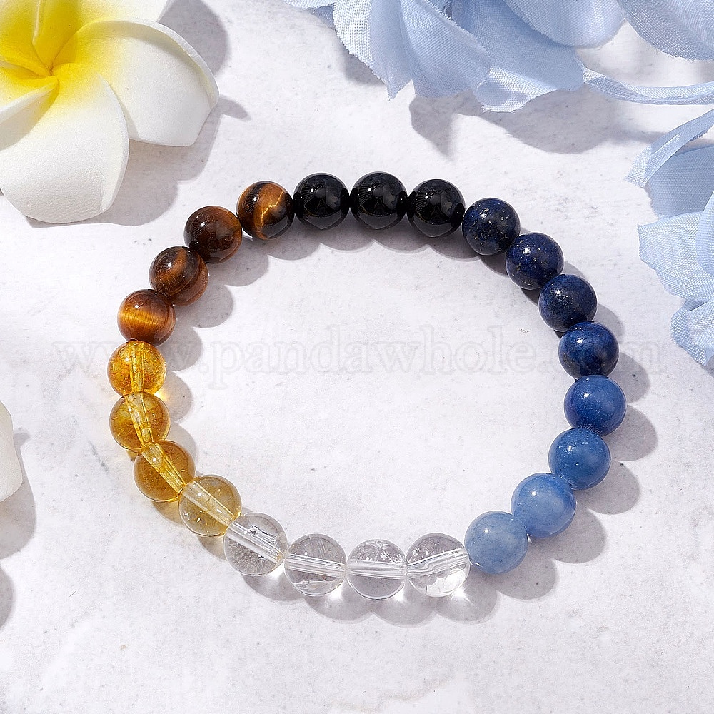 Круглые натуральные смешанные драгоценные камни бусины эластичные браслеты для женщин