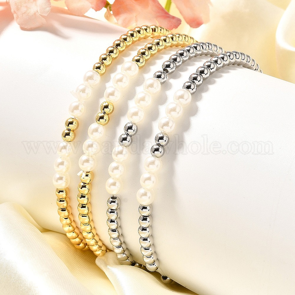 Латунные браслеты из бисера для женщин, с пластмассовой жемчужиной abs