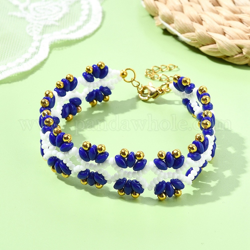 Браслеты из стеклянных бусин в виде цветов для женщин, с золотыми латунными бисера