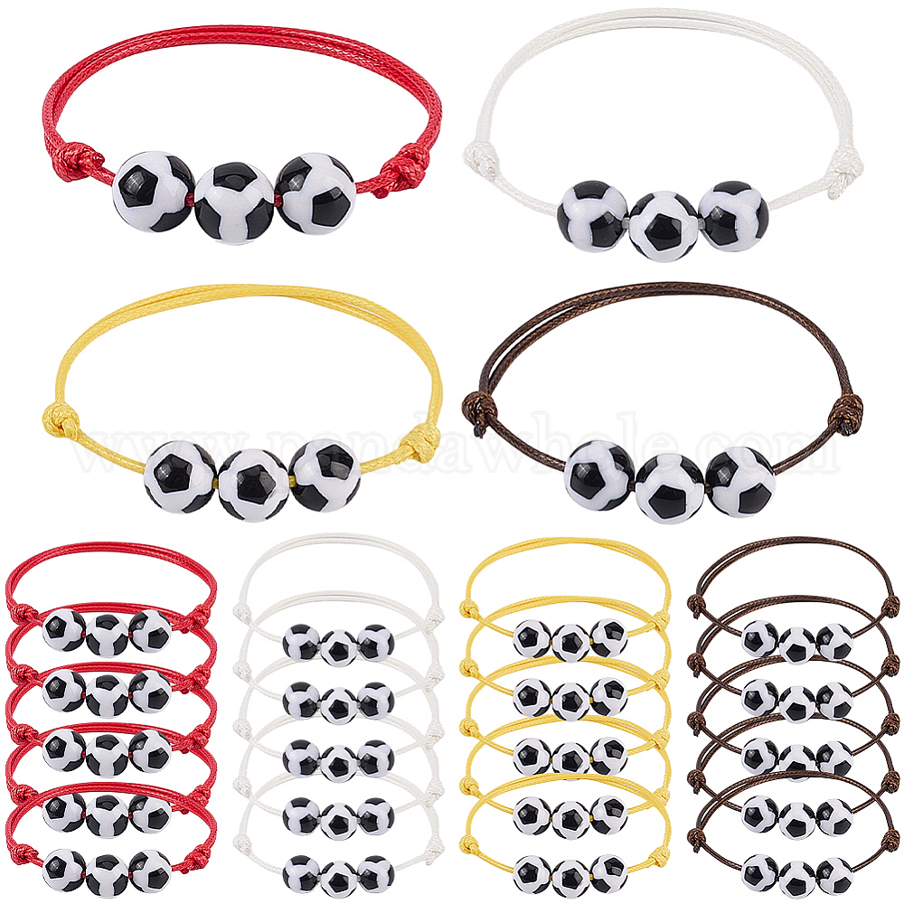 24шт 4 цвета регулируемые вощеные нейлоновые нити плетеные бусины браслеты, с футбольными акриловыми бусинами