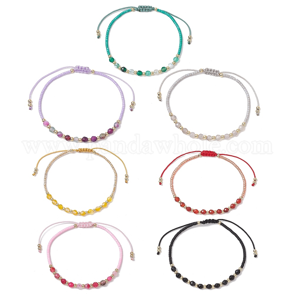 Браслеты из натурального драгоценного камня с плетением из бисера, круглые, с латунью и бисером