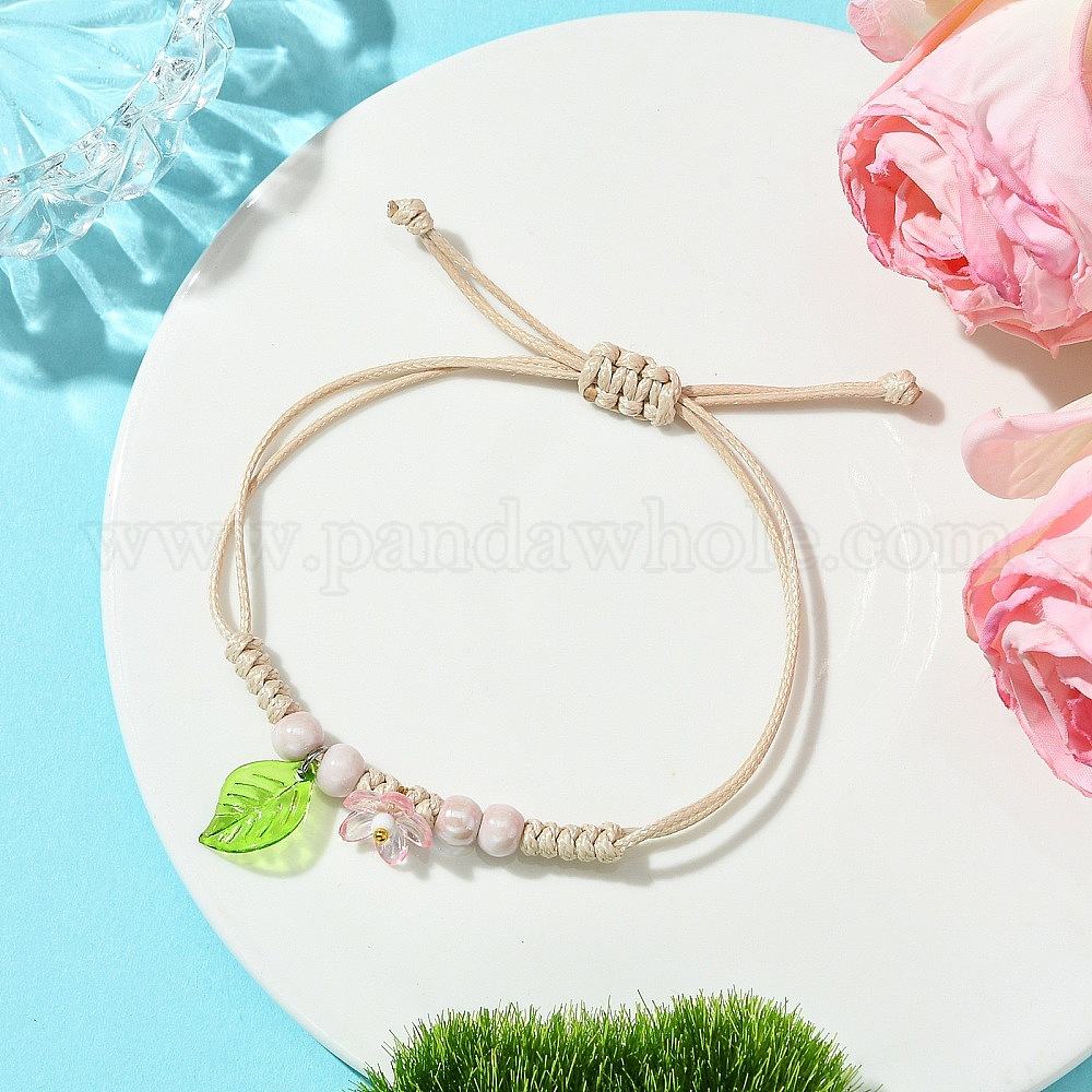 Фарфоровые бусины плетеные браслеты из бисера, браслеты с подвесками из акрила в виде цветов и листьев для женщин