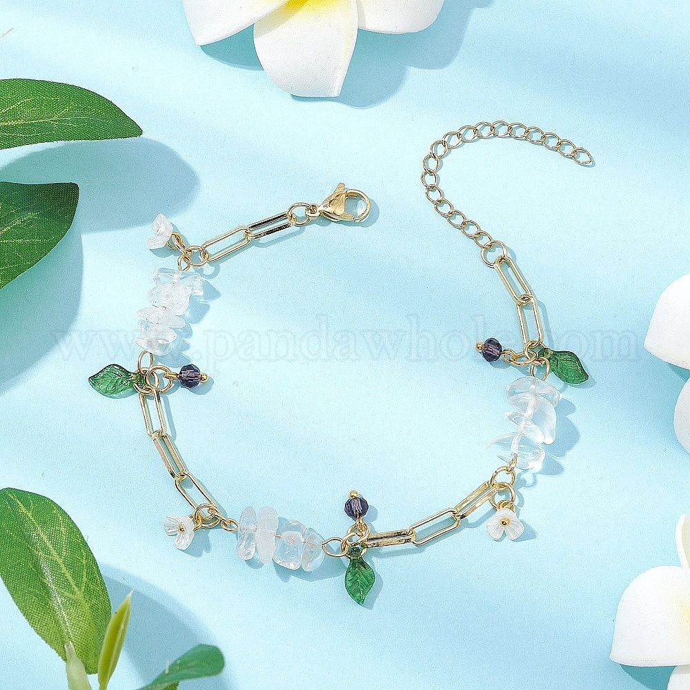 Браслеты из натурального кварцевого кристалла с бисером, цветок, ювелирные изделия из латуни и скрепок для женщин, со стеклянными бусинами