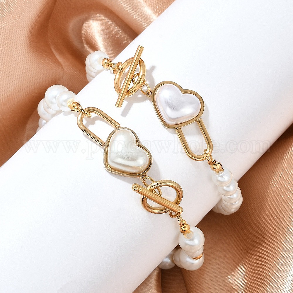 Браслеты из бусин в форме сердца из нержавеющей стали, с пластиковой жемчужины, ионное покрытие (ip)