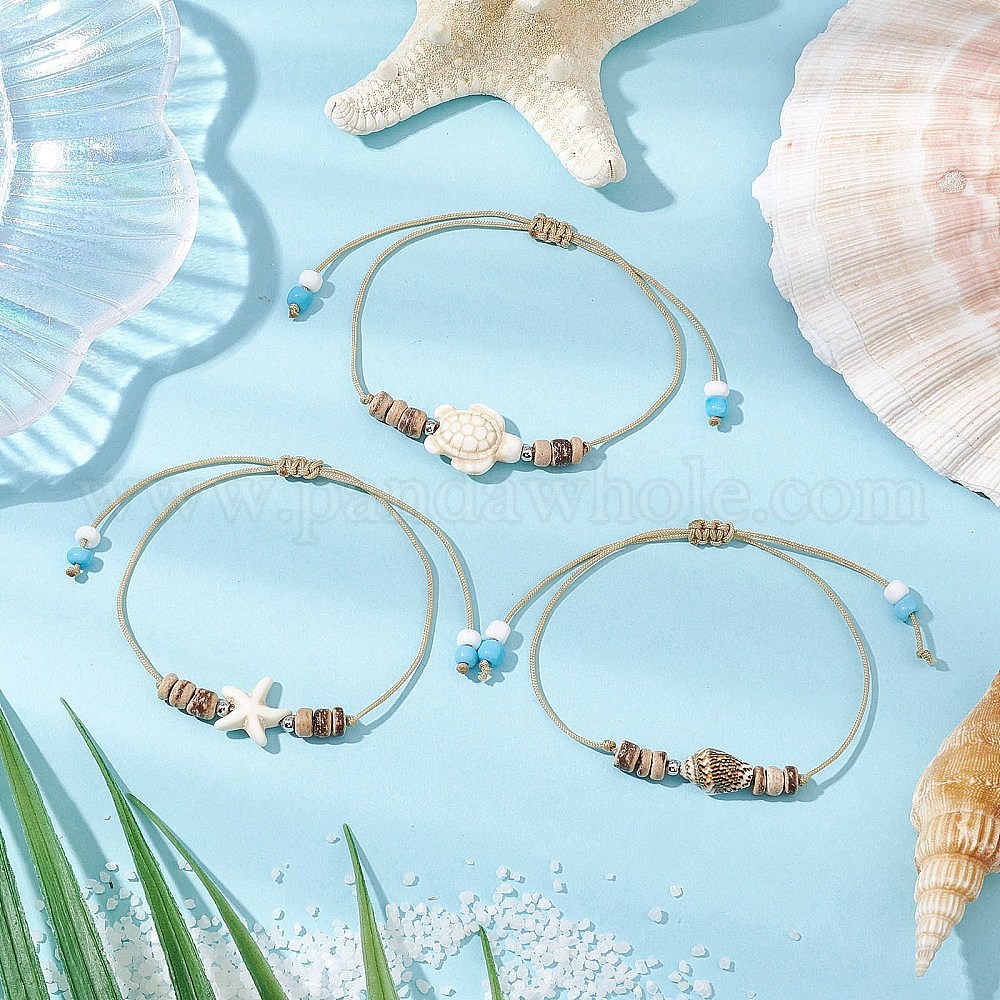 3шт. синтетическая бирюза и натуральные кокосовые бусины рондель плетеные браслеты для женщин и мужчин, с нейлоновой нитью