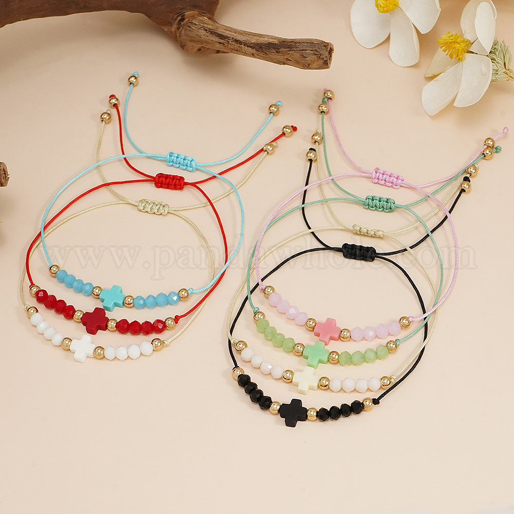 Браслеты из стеклянных бус в стиле бохо, крестик для женщин
