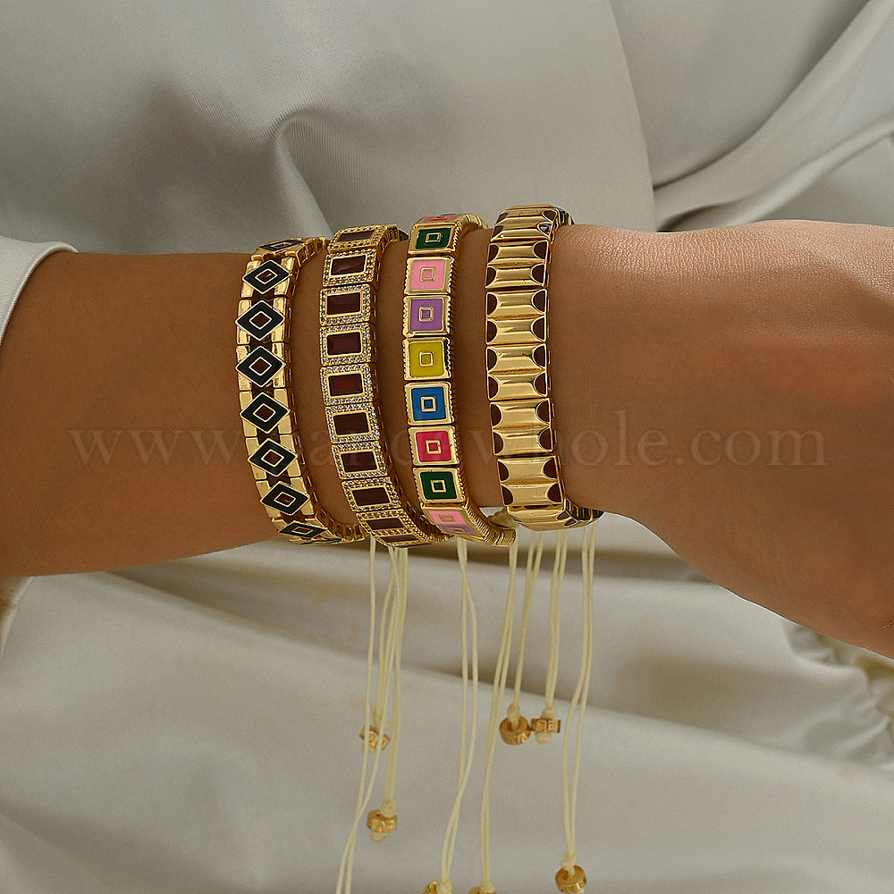 Плетеные браслеты из бисера из латуни и эмали в романском стиле, регулируемые браслеты из нейлонового шнура для женщин, прямоугольные (0318N2)