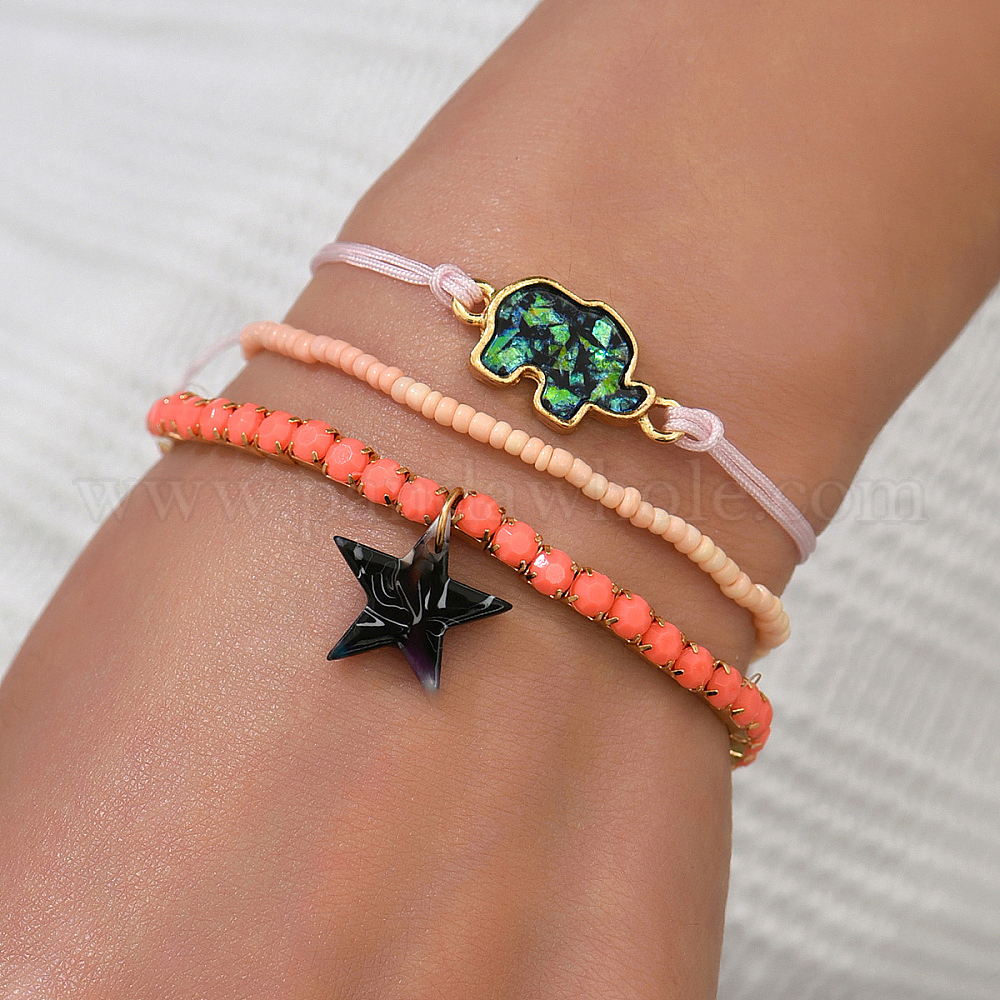Браслеты из пластиковых бусин, Браслеты с подвесками в виде синтетических звезд и слонов для женщин