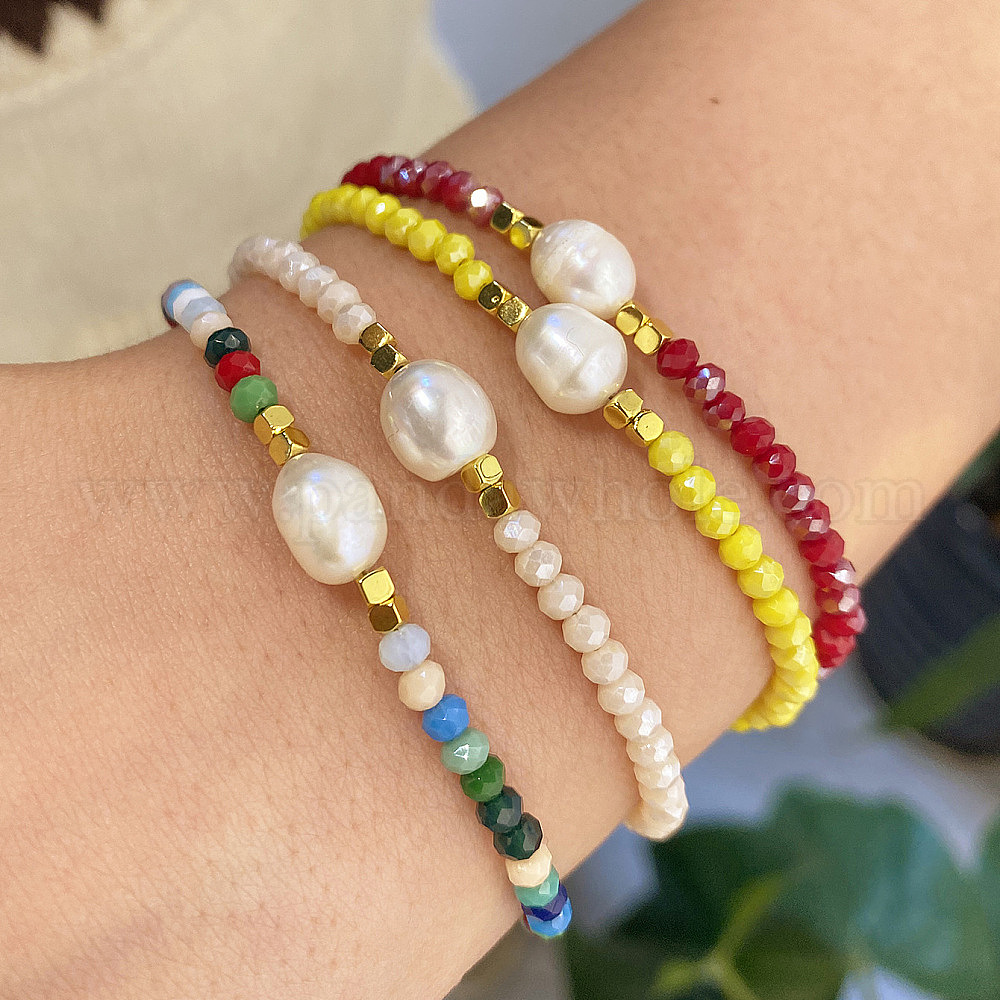 Стекло вышитый бисером браслеты для женщин, рондель, с натуральным пресноводным жемчугом, реальный 18 k позолоченный, граненые