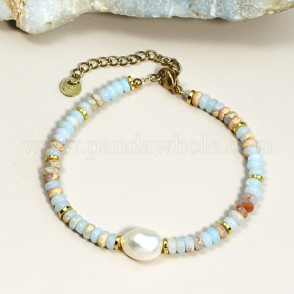 Браслеты из натурального камня шушан с бусинами для женщин, рондель, с натуральным пресноводным жемчугом и латунными бусинами (031H3P)