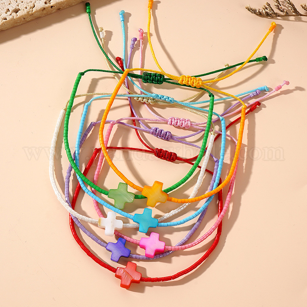 Браслеты из ракушек в стиле бохо, регулируемые плетеные браслеты из стеклянных бусин