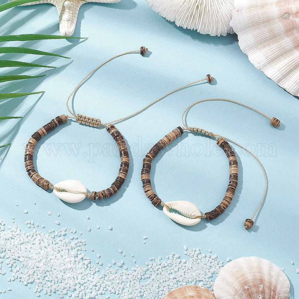 Браслеты из ракушек и кокосовых бусин для женщин, воском шнура