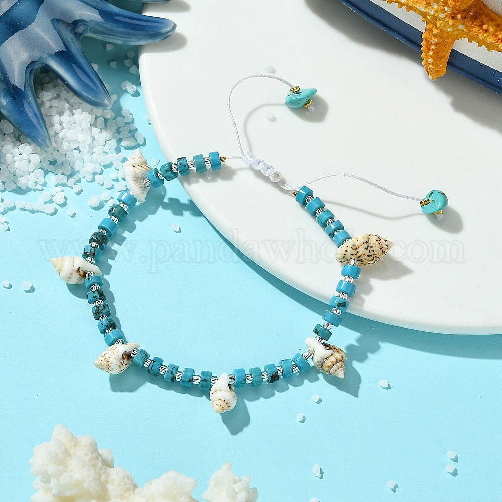 Браслеты с подвесками из натурального магнезита и синтетической бирюзы, регулируемые браслеты из нейлоновой оплетки из бусин, с стеклянные бусы