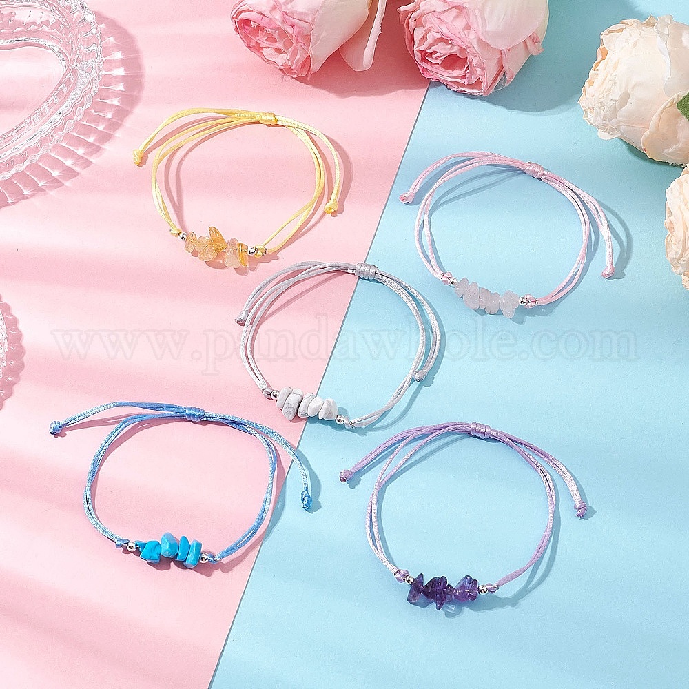 Регулируемые плетеные браслеты из натуральных и синтетических драгоценных камней для женщин, с вощеной нейлоновой нитью