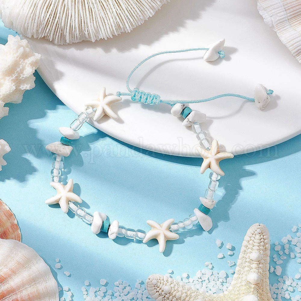 Регулируемые плетеные браслеты из синтетической бирюзы и магнезита для женщин, морская звезда, со стеклянными бисеринами