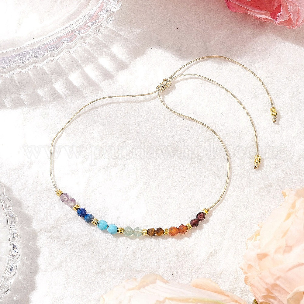 Регулируемые браслеты из натуральных смешанных драгоценных камней с бусинами для женщин на тему чакры, рондель, с вощеной нейлоновой нитью