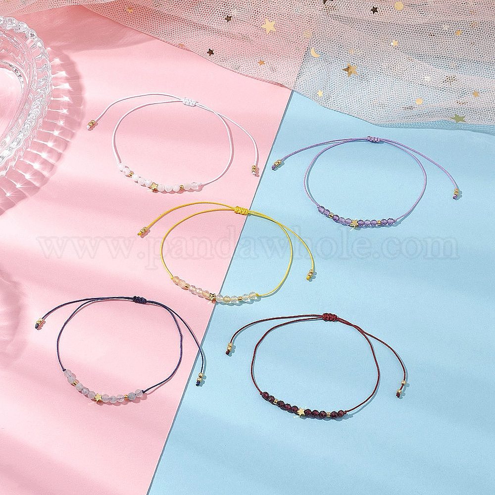 • Смешанные камни Натуральные круглые смешанные драгоценные камни плетеные браслеты из бисера для женщин, с регулируемой плетеной нейлоновой нитью, стеклянными бусинами и латунными звездочками, граненые, внутренний диаметр: 3 дюйм (7.6 см)