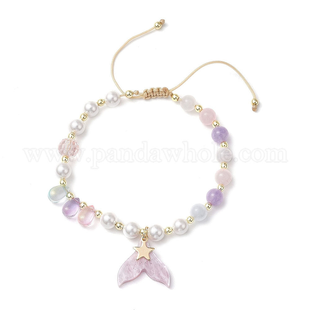 Плетеные браслеты из бусин из натурального аквамарина, розового кварца и аметиста для женщин, рыбий хвост и звезда, с гальваническим покрытием из немагнитных синтетических гематитовых бусин и бусин из ракушечного жемчуга (033D5K)