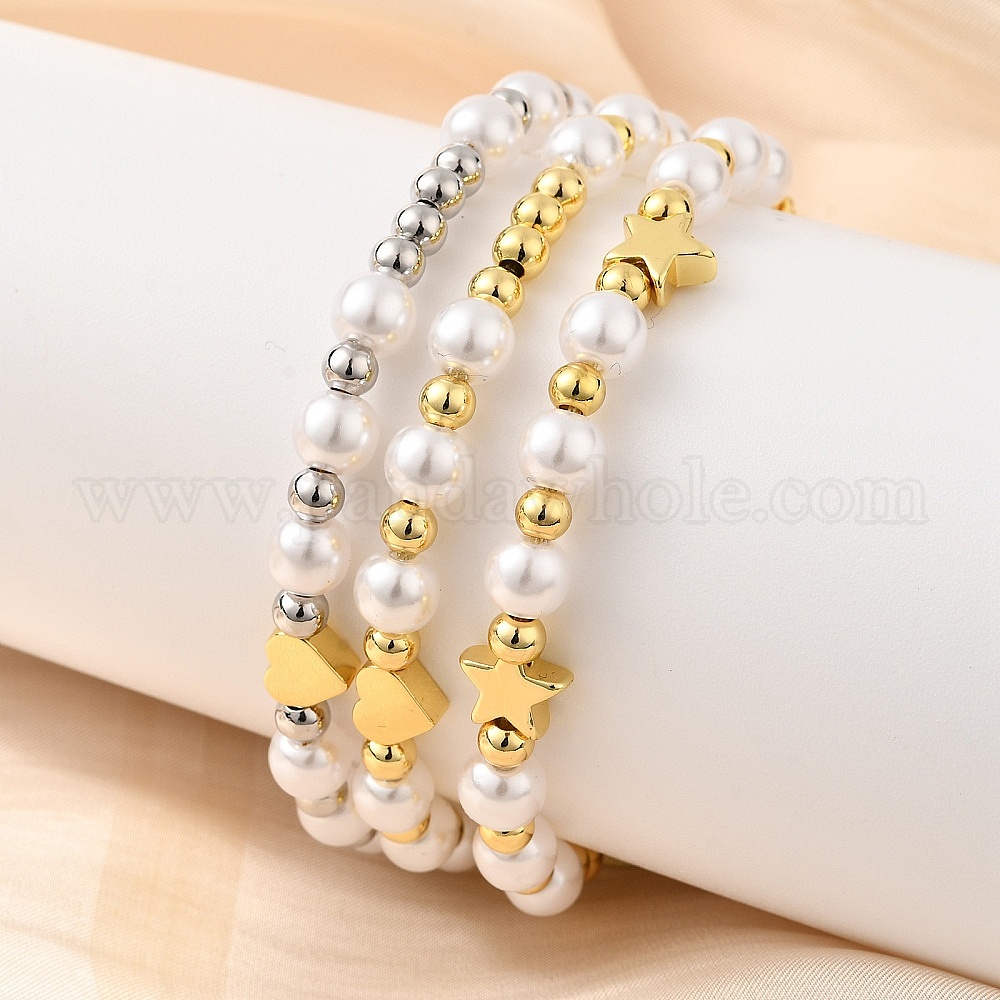 АБС искусственный жемчуг бусины плетеные браслеты из бисера для женщин, с латунной бисера