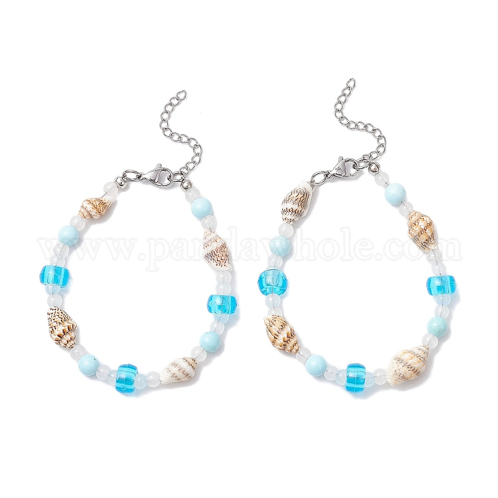 Браслеты из стеклянных, бирюзовых и ракушечных бусин для женщин, раковина