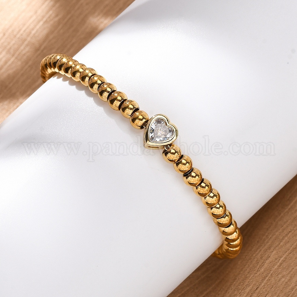 304 из нержавеющей стали бисер браслеты, латунные бусины в форме сердца с кубическим цирконием для женщин
