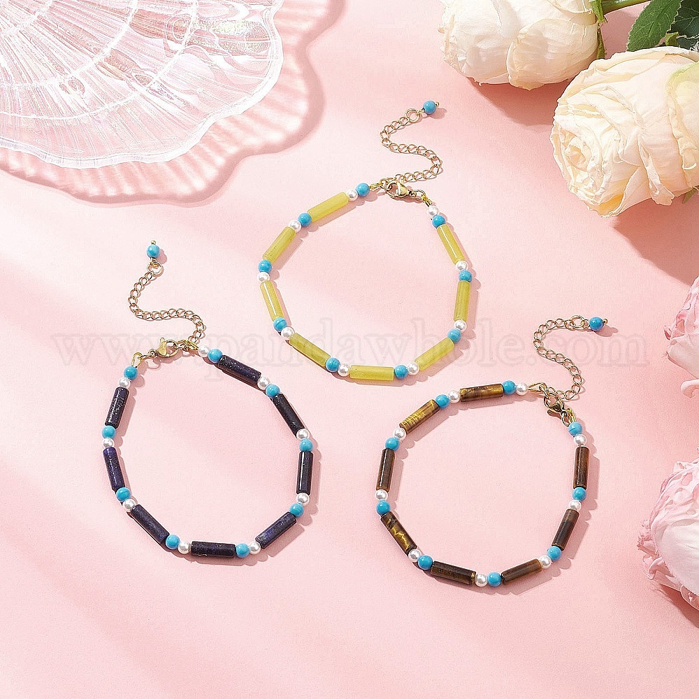 Браслеты из натуральных драгоценных камней и синтетической бирюзы для женщин, колонка (03584B)