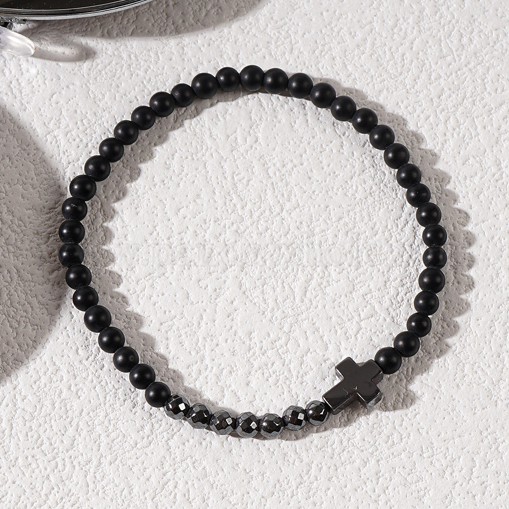 Браслеты из синтетического немагнитного гематита с круглыми бусинами и черным камнем для мужчин