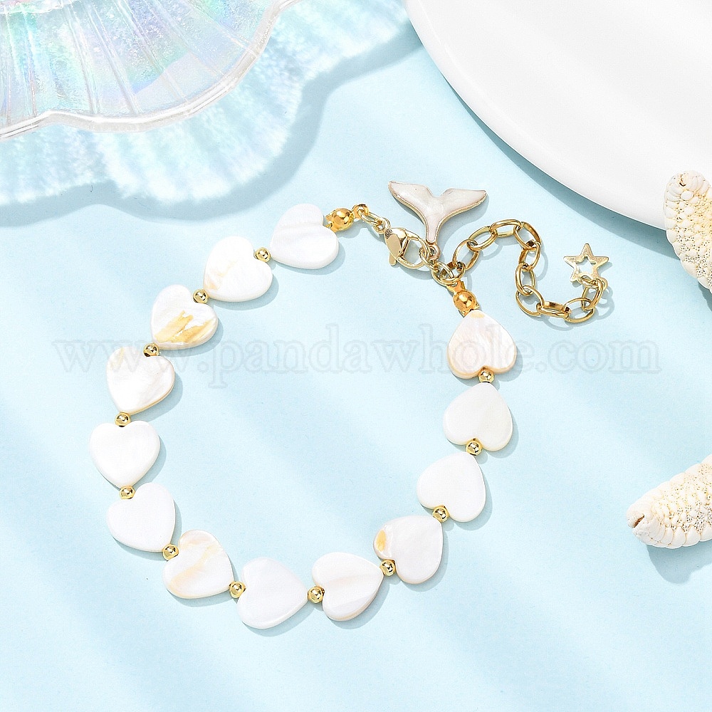 Браслеты из ракушечного жемчуга для женщин, сердце, с сплава эмали прелести