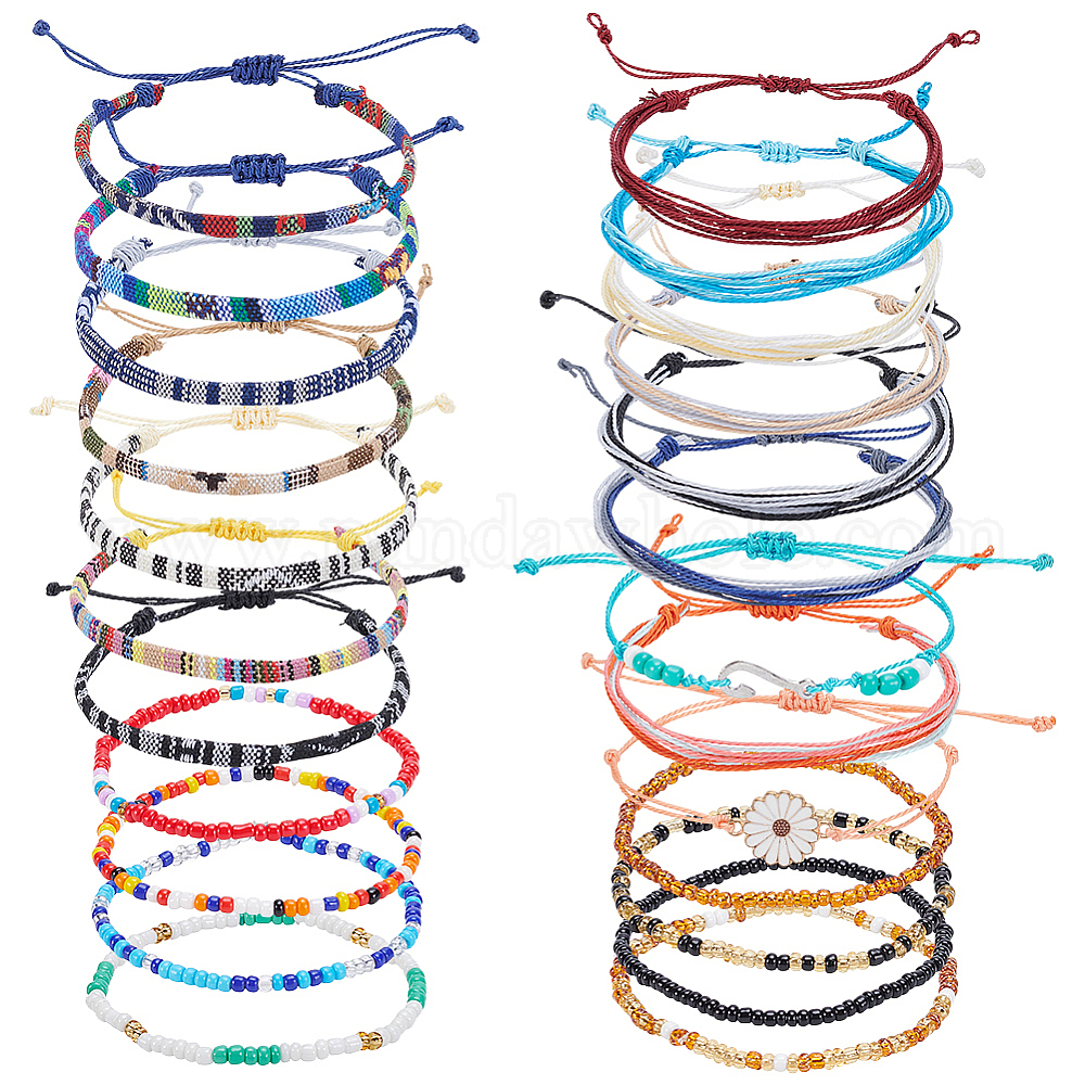 24шт. 1плетеные браслеты из шнура и плетеные браслеты из стеклянного бисера