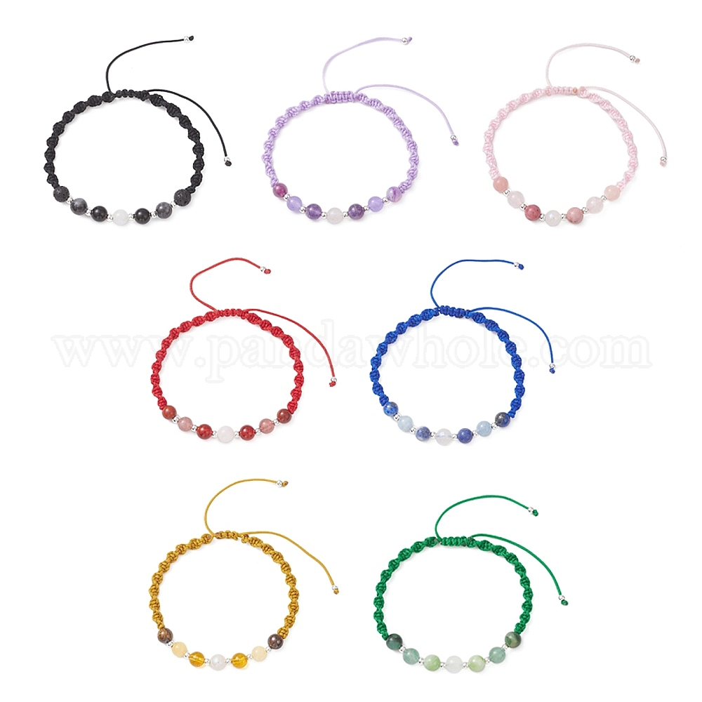 Браслеты из круглых бусин из натуральных и синтетических смешанных драгоценных камней для женщин, с нейлоновой нитью