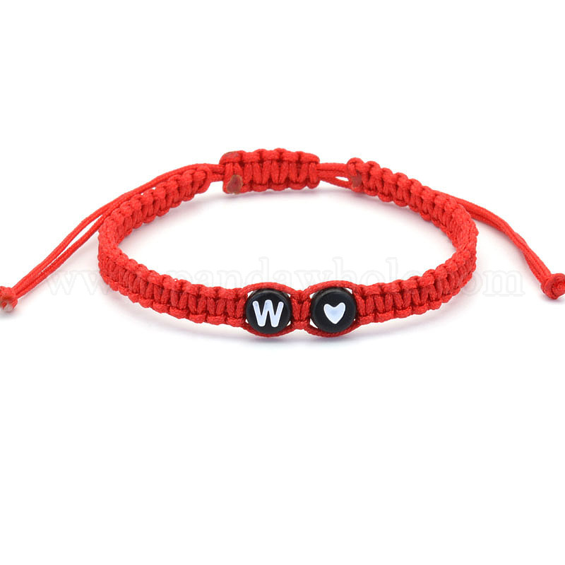 Бусины из смолы плетеные браслеты из бисера, регулируемые плетеные браслеты из полиэфирного шнура для мужчин и женщин, плоский круглый с буквой и сердцем