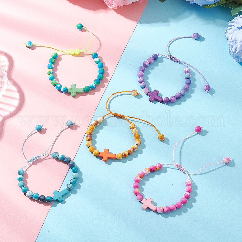 Браслеты из плетеных бусин для женщин из натурального окрашенного морского белого нефрита, синтетического морского белого нефрита и окрашенной бирюзы., крестик