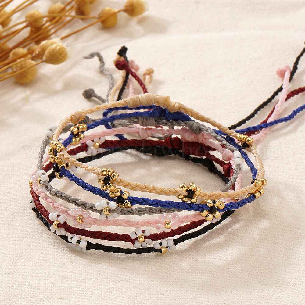 Браслеты из бисера ручной работы, плетеные из стеклянных бусин, Браслет с цветочным подвеском для женщин, с нейлоновой нитью