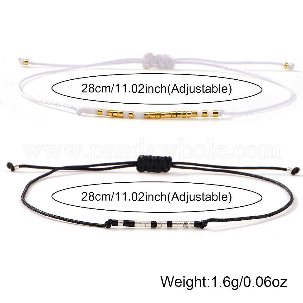 2шт. минималистичные браслеты из плетеного бисера и стеклянных бусин, Регулируемый браслет из нейлоновой нити для пары
