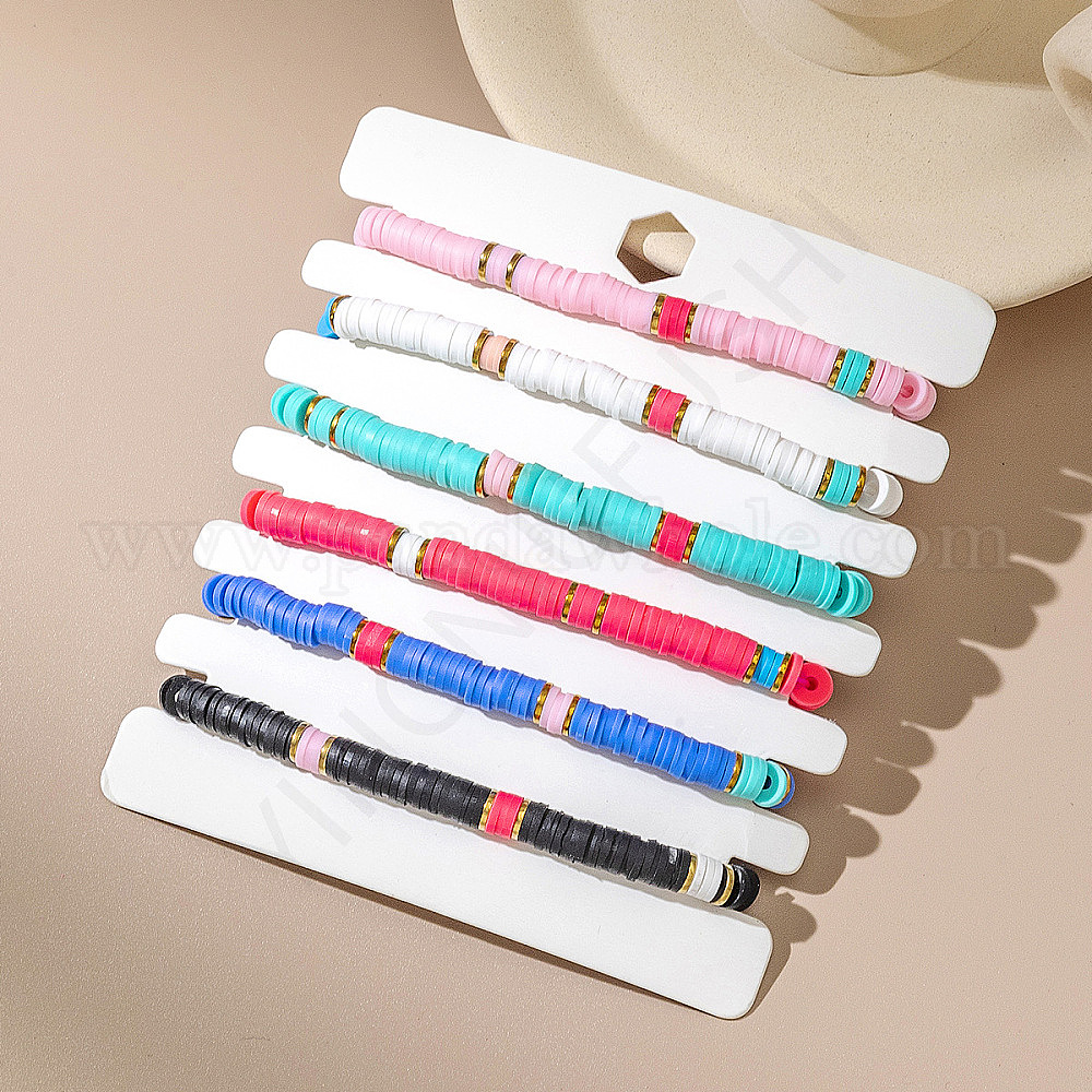 6 Браслеты из плетеных бусин в богемном стиле из полимерной глины в форме дисков для женщин, со сплавом, золотые