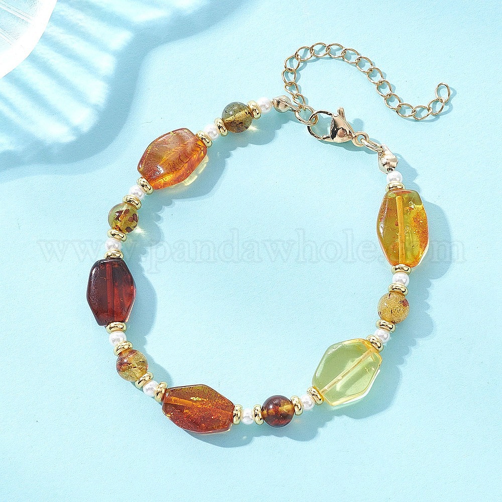• Янтарный Браслеты из натурального янтаря и жемчуга с градиентным переходом цвета для женщин., наггетсы и круглые, 7.09 дюйм (18 см)