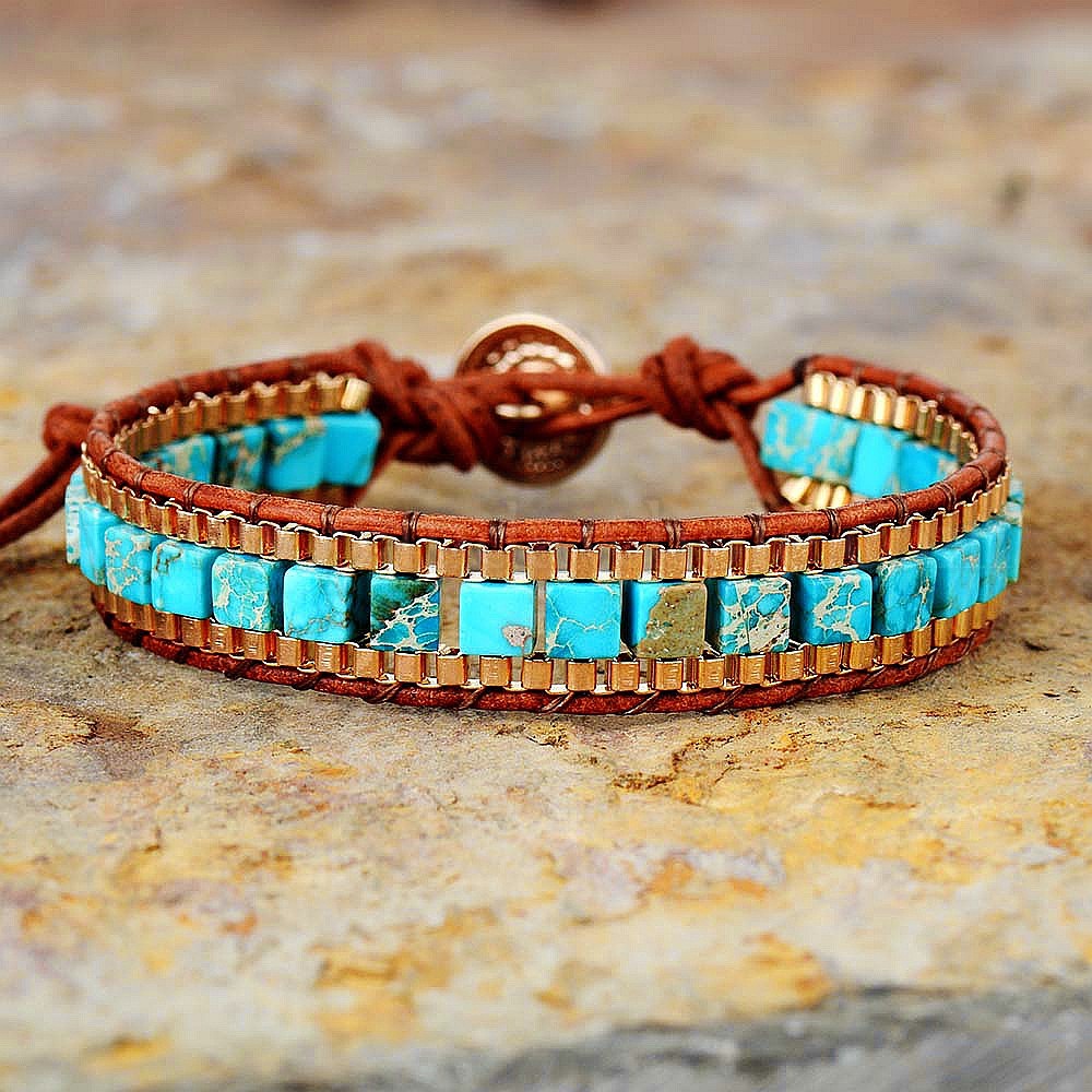Браслеты из натуральных драгоценных камней и плетеной кожи с бусинами, регулируемые браслеты для женщин мужчин, квадратный