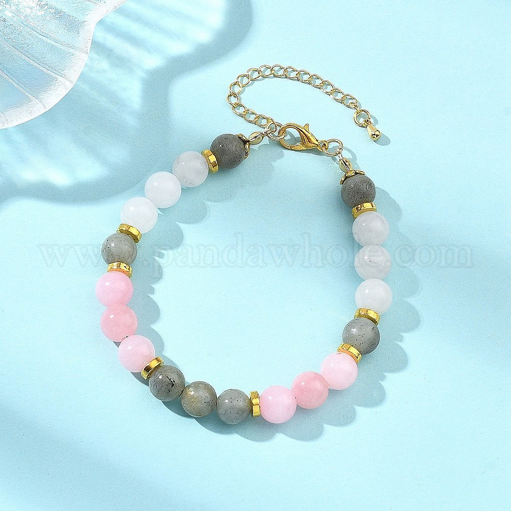 Браслеты из натурального машанского нефрита, белого нефрита и лабрадорита с круглыми бусинами для женщин