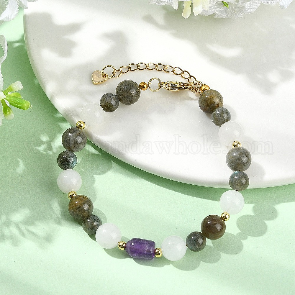 Браслеты из натурального лабрадорита, аметиста и белого нефрита для женщин, круглый и колонки