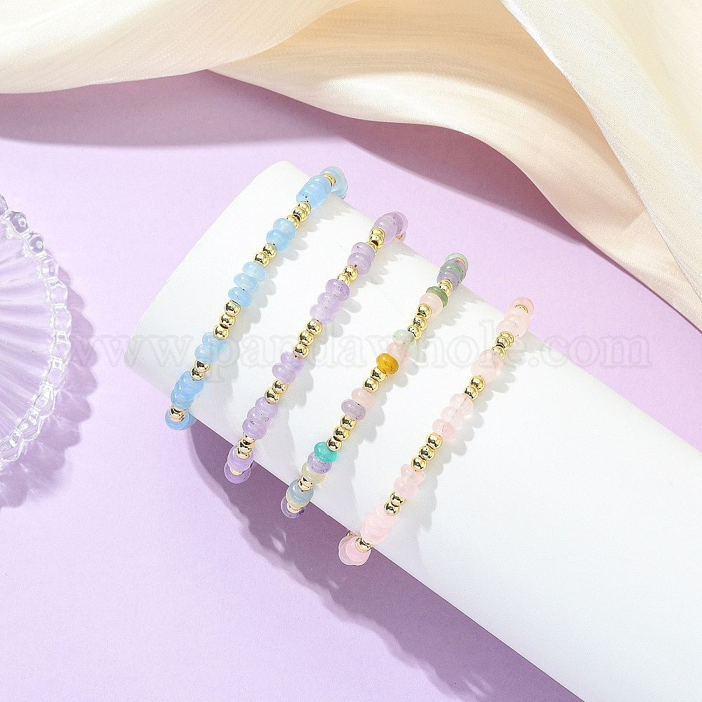 Браслеты из окрашенного натурального белого нефрита и латунных бусин для женщин, рондель и круглый, с 304 из нержавеющей стали тумблеров застежками, реальный 18 k позолоченный