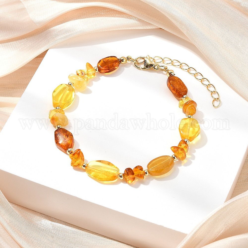 Браслеты из натурального янтаря и латунных бусин для женщин, наггетсы и чипсы, реальный 14 k позолоченный